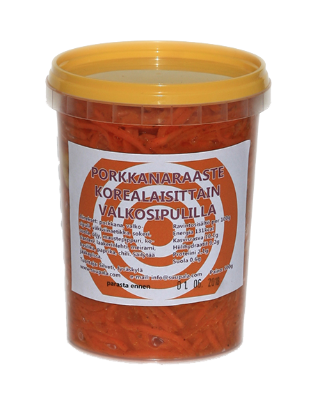 Maukas porkkanasalaatti, rapea koostumuksesta sisältä valkosipulia. Sopii pääruoan lisukkeena. Se on valmis näytettäväksi, sitä voi myös lisätä muihin salaatteihin.
